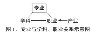 专业是学科与职业的交叉点。专业是按照社会对不同领域和岗位的专门人才需要而设置的,不同领域专门人才所从事的实际工作需要什么样的知识、素质、能力结构作为基础,专业就组织相关课程和训练来满足,因此,专业是处在学科与社会职业需要的交叉点上,如图1 所示。